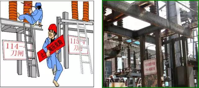 某年1月30日下午,某厂进行110kV 4母线清扫、115开关换油工作。电气主任擅自扩大工作范围,决定清扫115--4刀闸,不仅未办理工作票,而且错将梯子移至带电的114-4刀闸处,同时摘掉114-4刀闸处的“止步,高压危险”警示牌。检修工到现场后,也未核对刀闸的编号,登上带电刀闸,电弧烧伤致死。